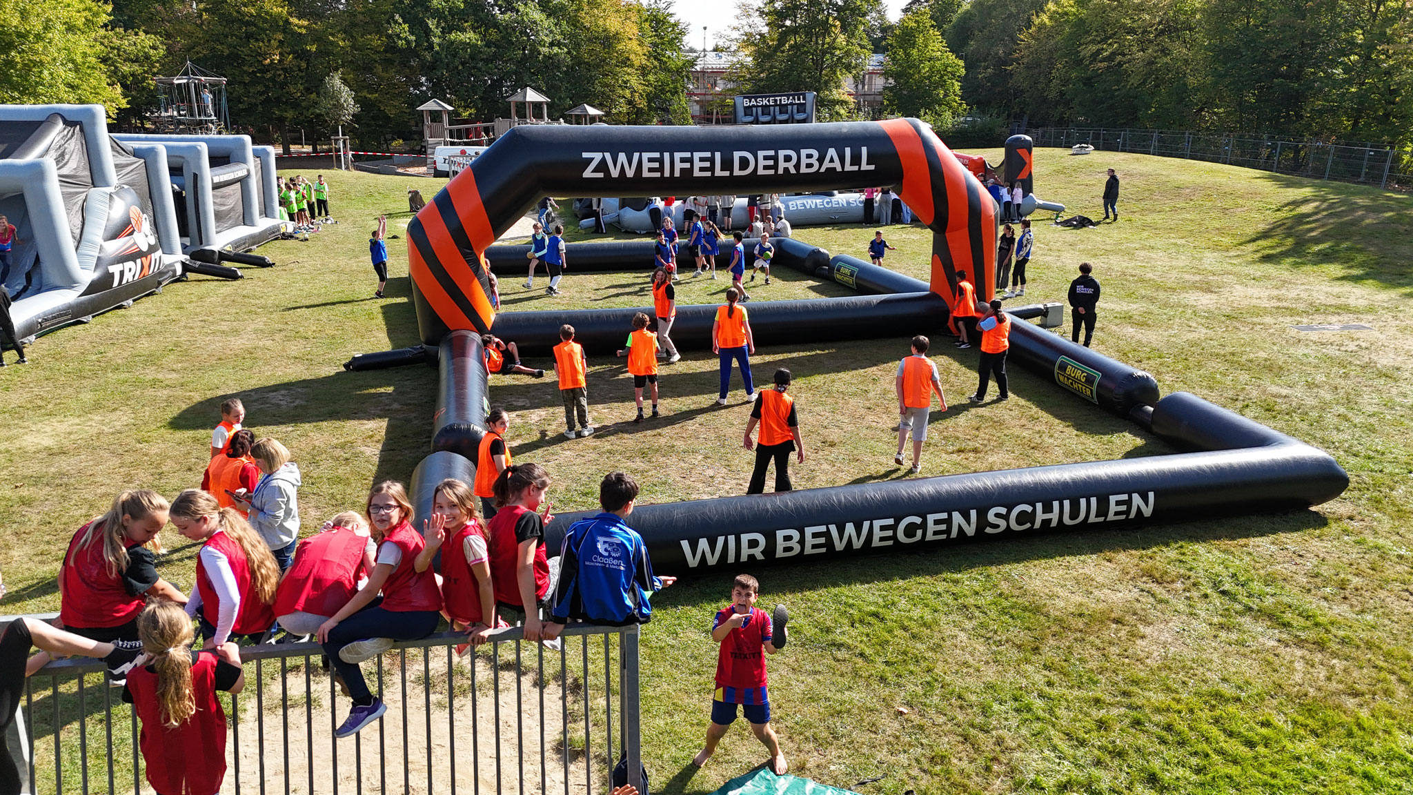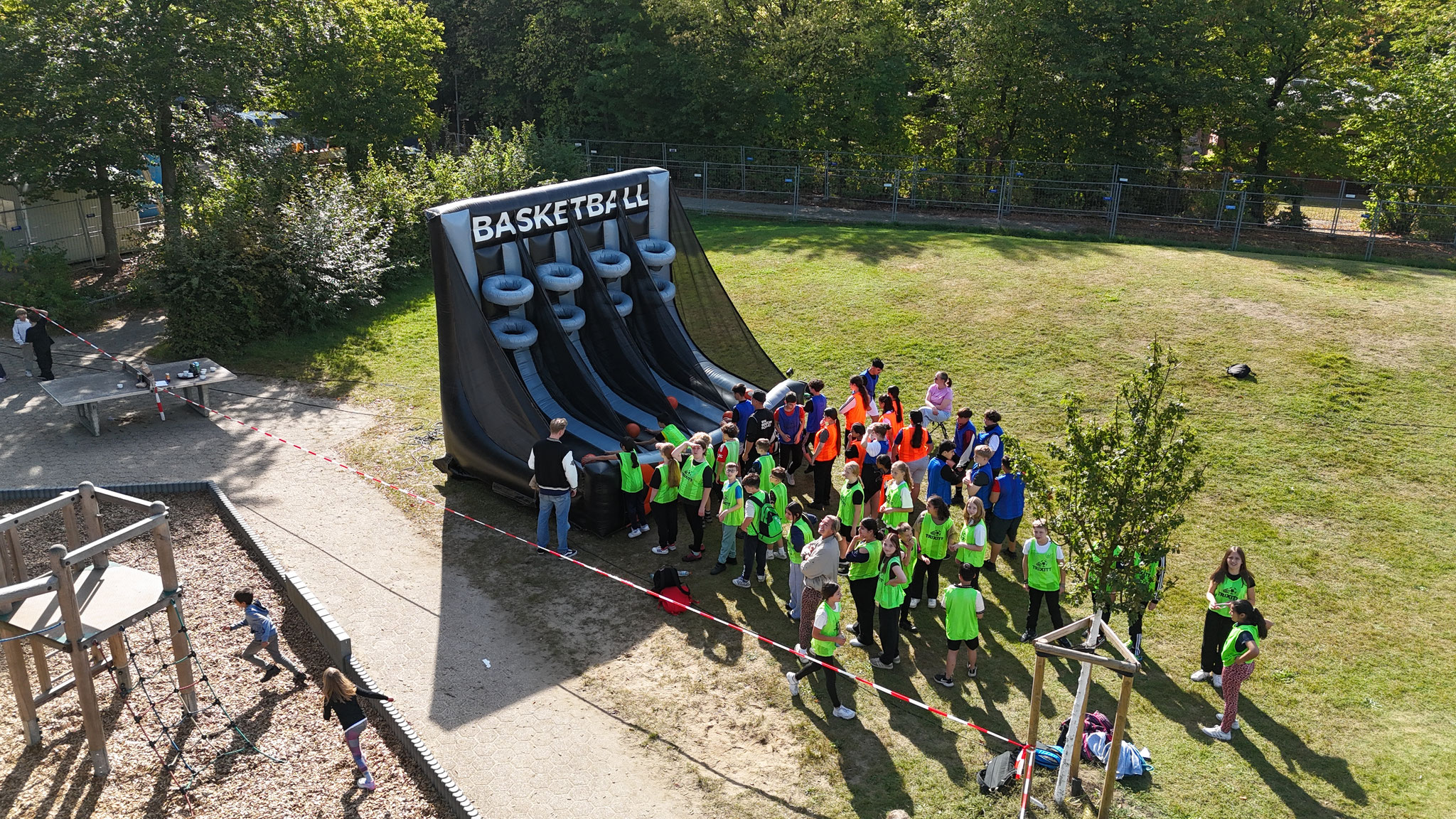 Am Donnerstag fanden sich die Schülerinnen und Schüler der Außenstelle zu einem Sportfest zusammen. In klassenübergreifenden Teams haben sie sich an verschiedenen sportlichen Spielen versucht.